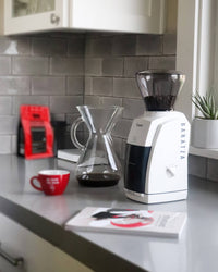 The Baratza Encore provides consistent grinds for brew methods from espresso to French Press and everything in between. Straightforward controls make your daily routine simple and easy. Load up your hopper with your favorite beans, turn the hopper to the grind setting you want, switch it on and let the precision conical burrs deliver consistent, quality ground coffee every time.
